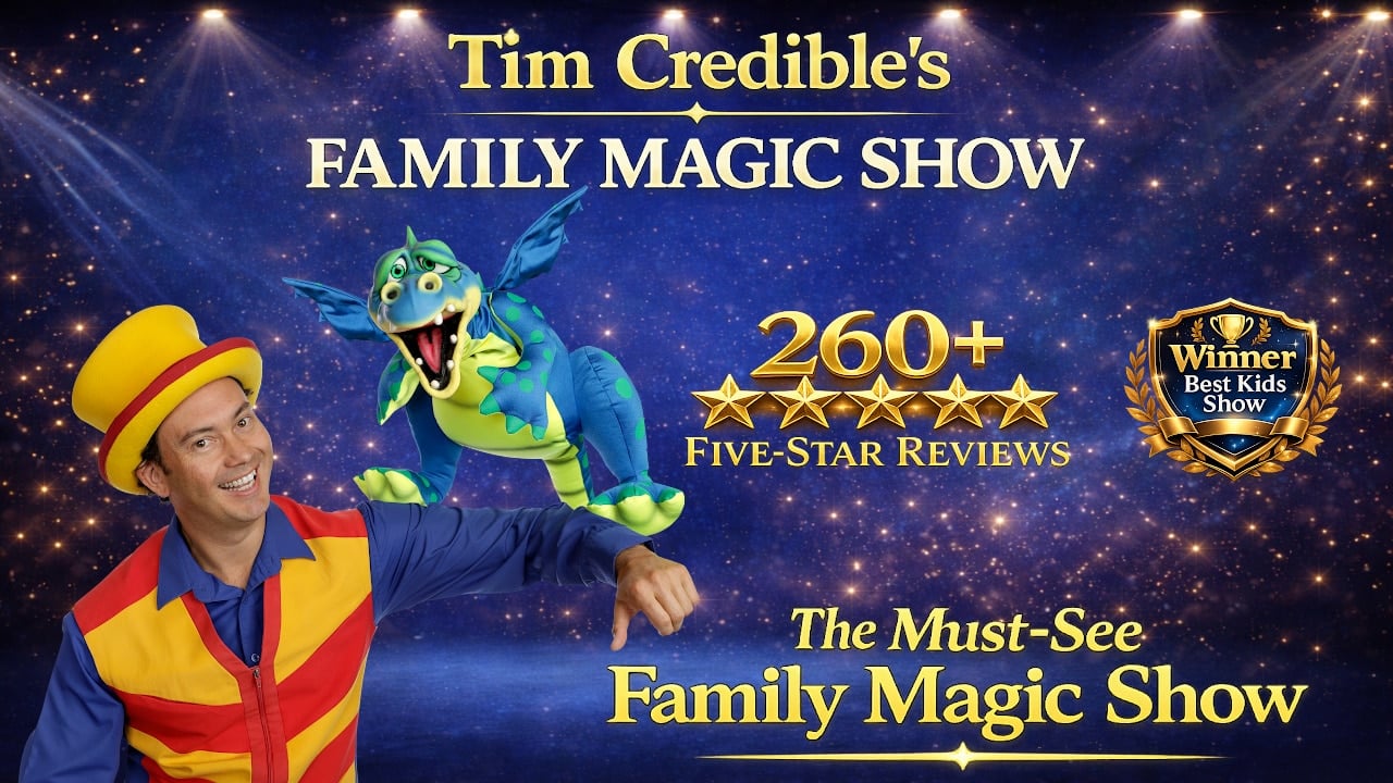 Tim Credible’s Family Magic Show is a must-see at the Melbourne Magic Festival. Packed with laugh-out-loud comedy, amazing magic and loads of audience interaction, this high-energy show keeps kids entertained from start to finish (and the adults love it too!).